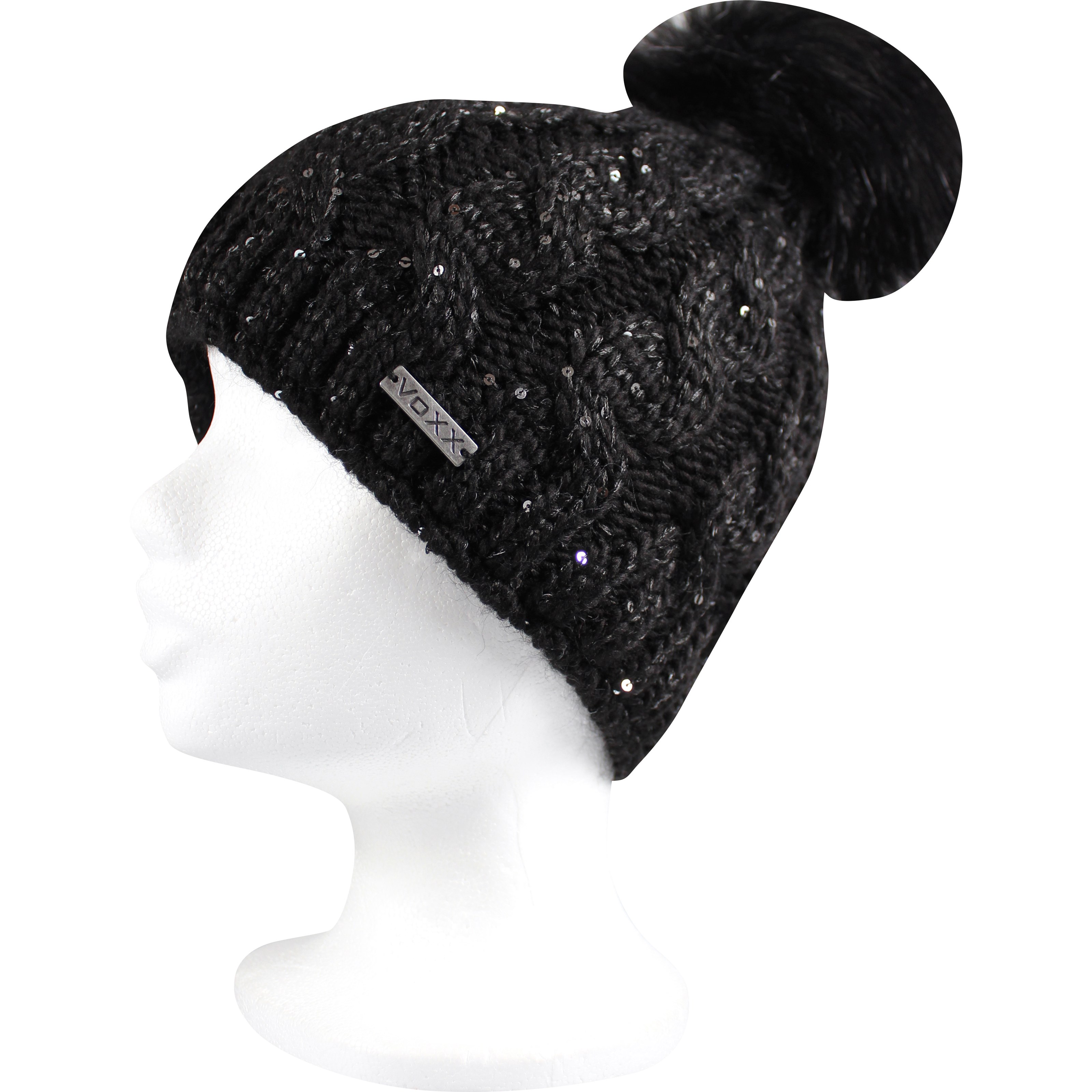 VoXX ASTRA women's knitted hat with sequins and pom-pom BLACK