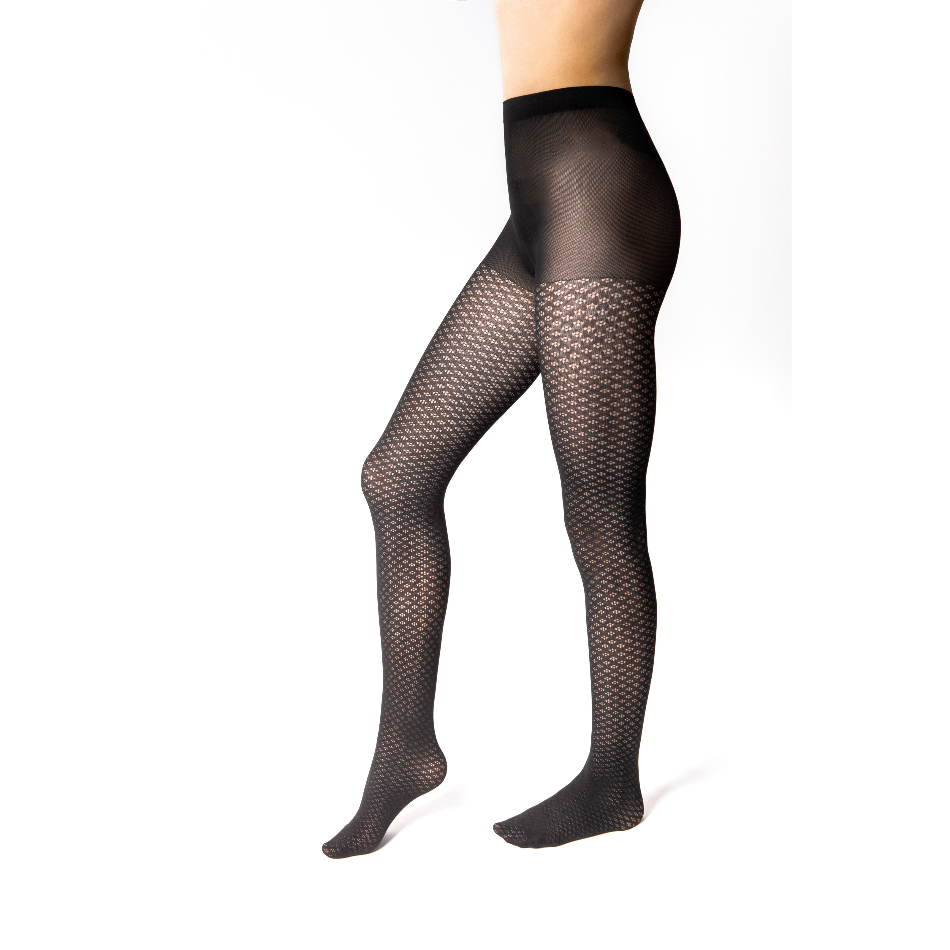 The black patterned ILARIA tights have a delicate small pattern and are semi-transparent. They are made of high-quality knit fabric with elastic elastane, without reinforced toes, but with a small gusset for maximum comfort. These high-quality tights are carefully packaged in an extra bag and envelope.