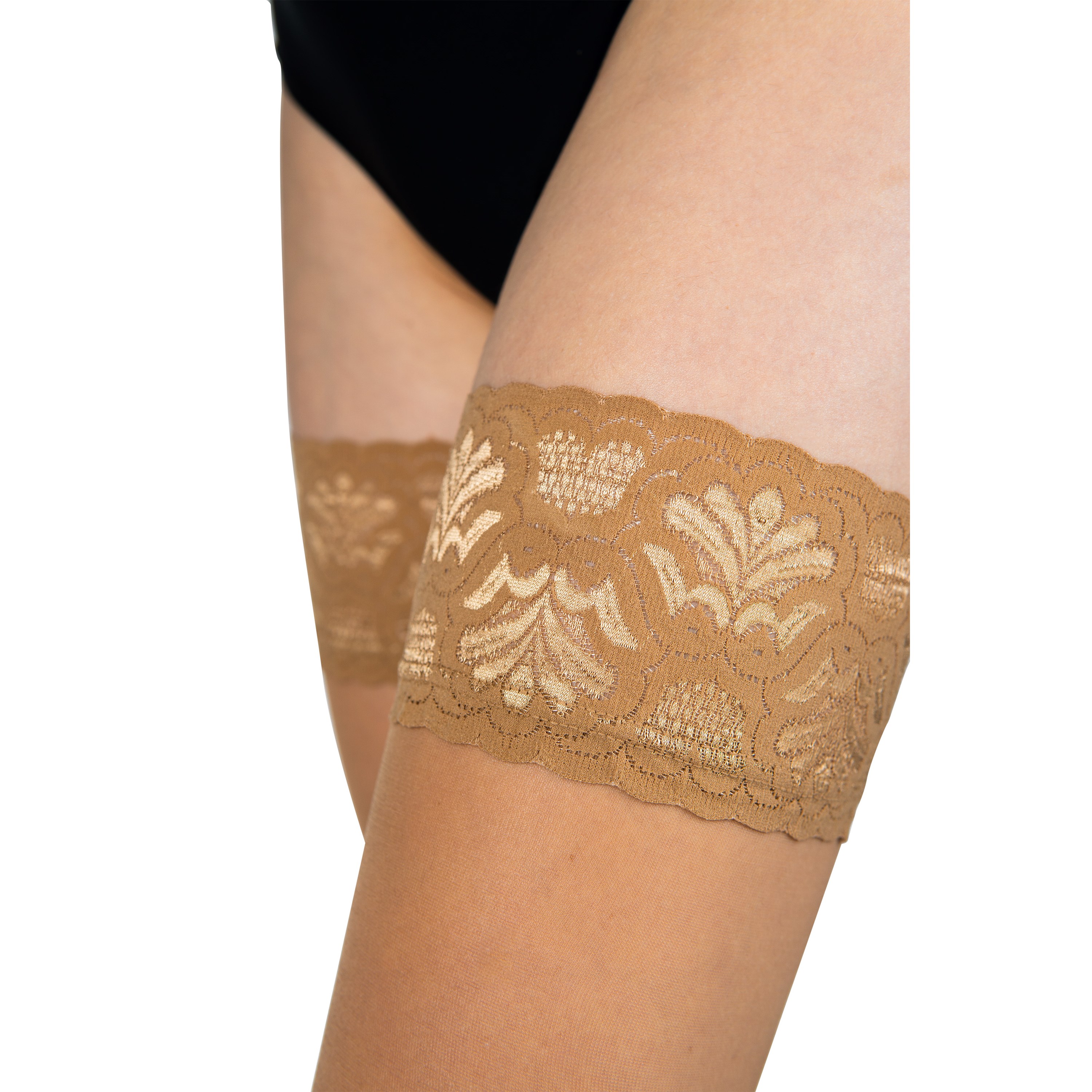 LADY HOLD UPS women's hold-up stockings from the be Lady collection in 20 DEN are delicate stockings decorated with delicate 9 cm high lace. The stockings are hold-ups and stay in place thanks to two silicone bands that adhere perfectly to the skin. More info