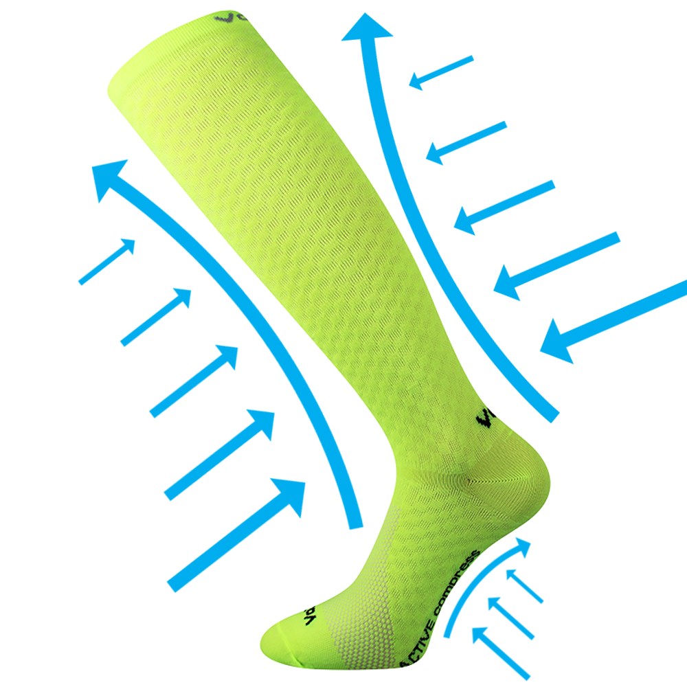Cheerful knee socks ensure increased blood flow, which improves muscle oxygenation. They are particularly suitable for activities that place excessive strain on the lower limbs, from normal walking, trekking, running, extreme sports and indoor sports to cycling. They are suitable for sports activities where muscles regenerate more quickly. The knee-high socks are breathable and have ventilation zones on the instep for maximum sweat wicking. VoXX® compression knee-high socks are also suitable for long periods of standing or sitting at work, or long journeys in various modes of transport. Coloured knee socks can be used to prevent varicose veins and are suitable for expectant mothers. Compression knee socks are in temperature class A, suitable for temperatures ranging from +10°C to +35°C.