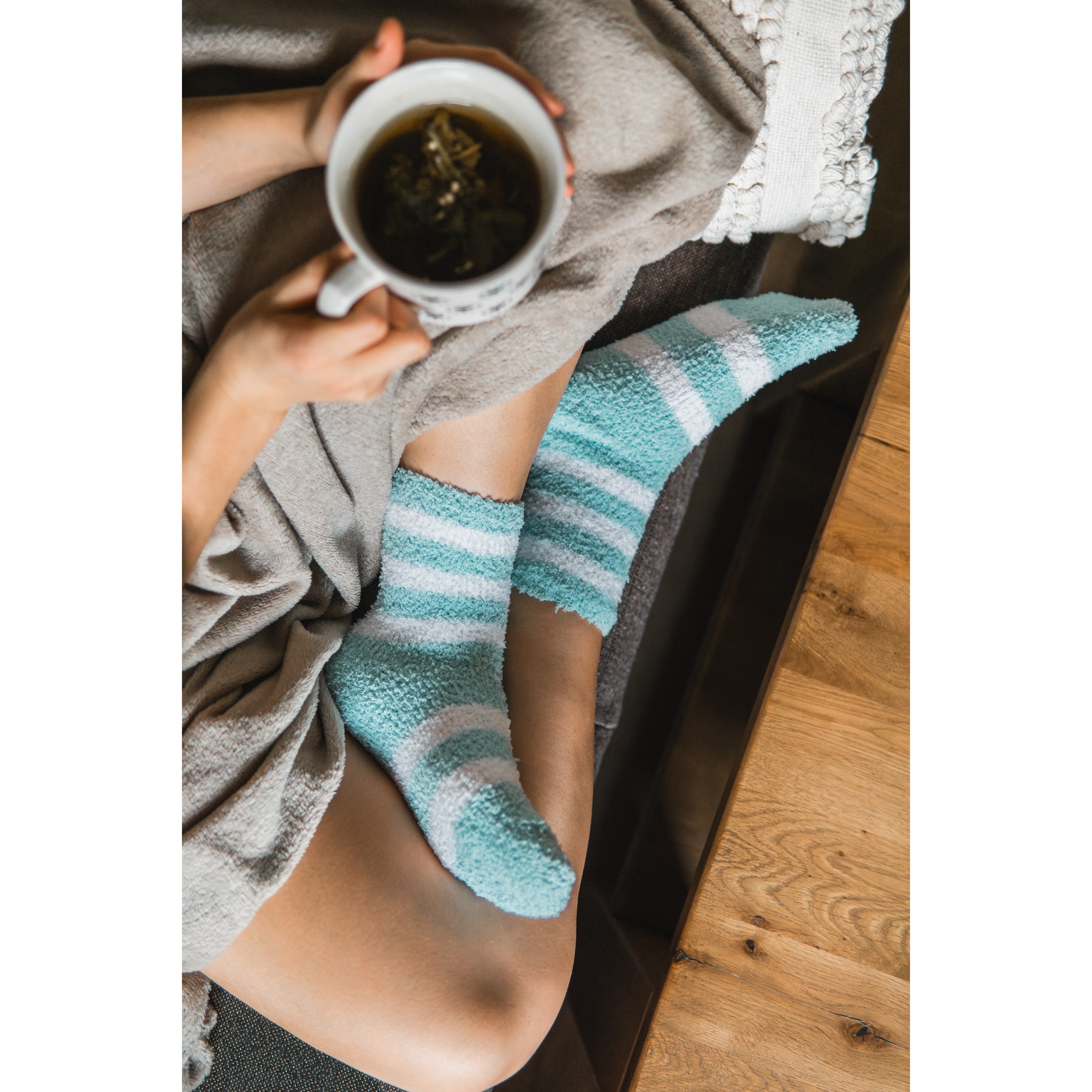 Women's colourful socks are perfect for lounging on the sofa at home or watching television. You can even wear them to bed. We sell them in a value pack of two colour-coordinated pairs in a solid colour and striped combination.