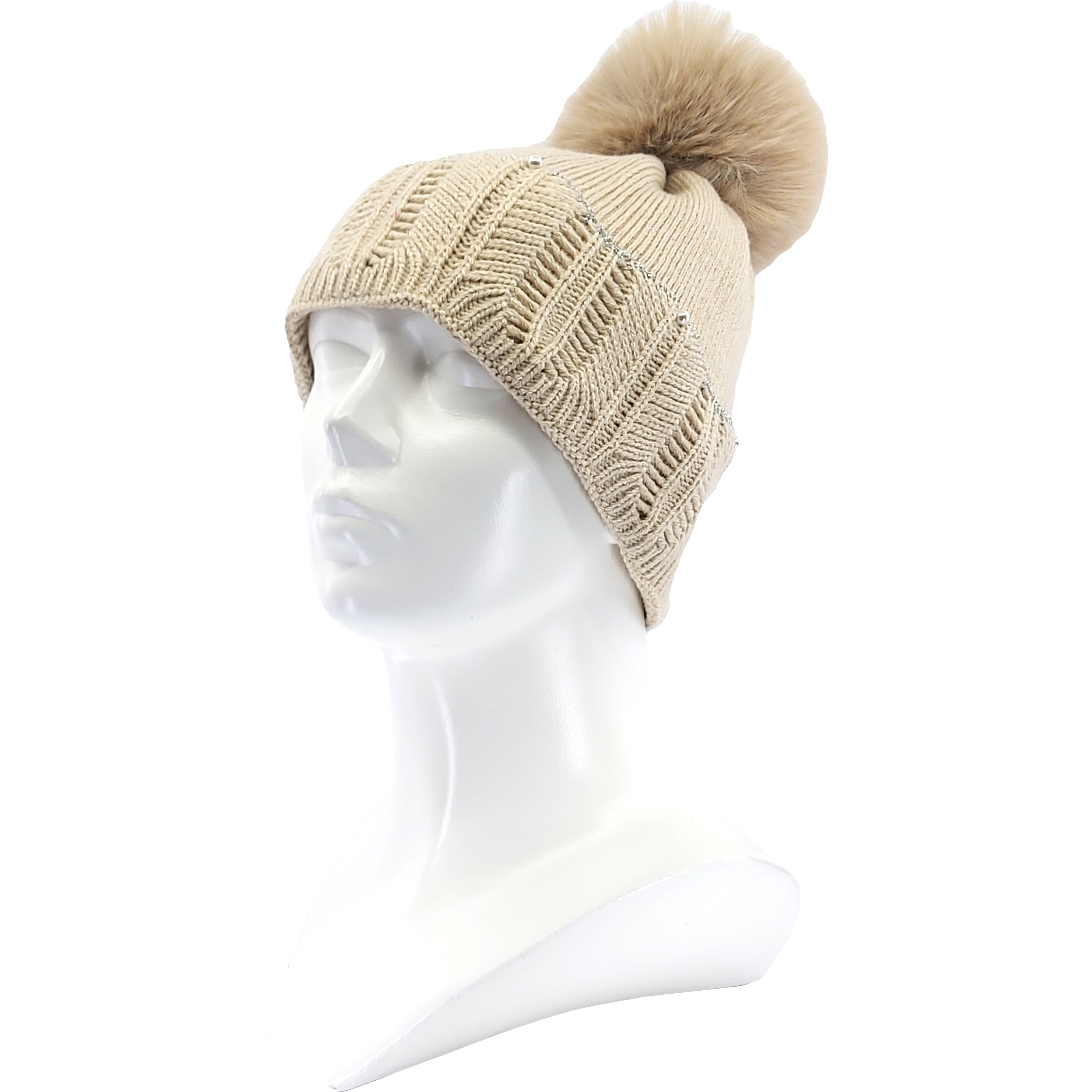VoXX women's knitted hat with viscose and pompom, CREAM
