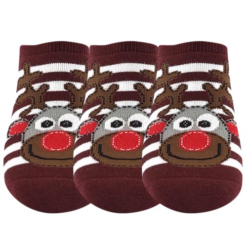 Lonka® CUPID ABS soft terry socks are soft and warm with an extra low height below the ankle. These thick terry socks have a high cotton content, making them very pleasant to the touch and excellent at absorbing sweat. The toe is sewn with a fine chain stitch, making the seam smooth. The striped design is decorated with a "Christmas" reindeer motif. The socks can be worn instead of slippers!